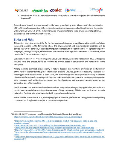 La situación descrita anteriormente ocurre a diario en la Amazonia, una enorme región que abarca nueve países, contiene extensas reservas forestales, reservas indígenas y parques nacionales, y alberga una impresionante diversidad cultural, lingüística, geográfica y natural. Por desgracia, la deforestación y la expansión de la frontera agrícola, las economías ilegales vinculadas al narcotráfico y un modelo económico extractivista que privilegia actividades como la minería y la ganadería amenazan la existencia de la Amazonia y de las comunidades que la habitan, la mayoría de las cuales tienen muy pocas oportunidades de participar en los procesos de elaboración de políticas. Estos desafíos tienen un profundo impacto social, ya que alrededor del 45% de los hogares de la región tienen necesidades insatisfechas (CEPAL 2018)[i] . Además, quienes trabajan para proteger los ecosistemas naturales y las comunidades locales de estas amenazas se enfrentan a muchas amenazas por su trabajo (Mongabay 2022).